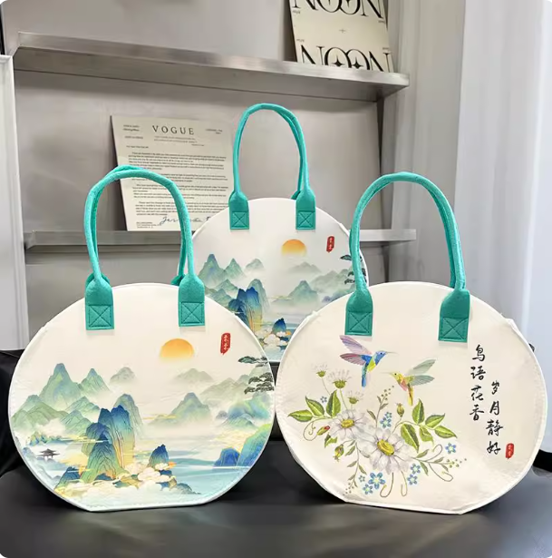 Crafted from durable felt, it merges artistic tradition with modern functionality—perfect for carrying books or daily essentials while showcasing Eastern aesthetics. The design captures the poetic harmony of nature, ideal for cultural enthusiasts seeking minimalist elegance.